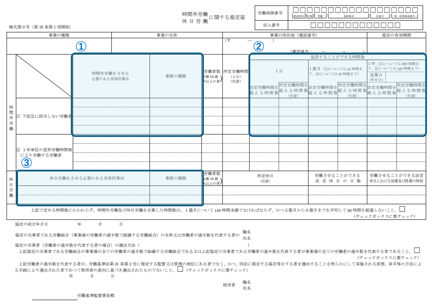 36協定は、単に「残業してもよい」という免罪符ではなく、どの業務で・どれくらいの時間外労働を・どの期間行うのかを明確に定める必要があります。